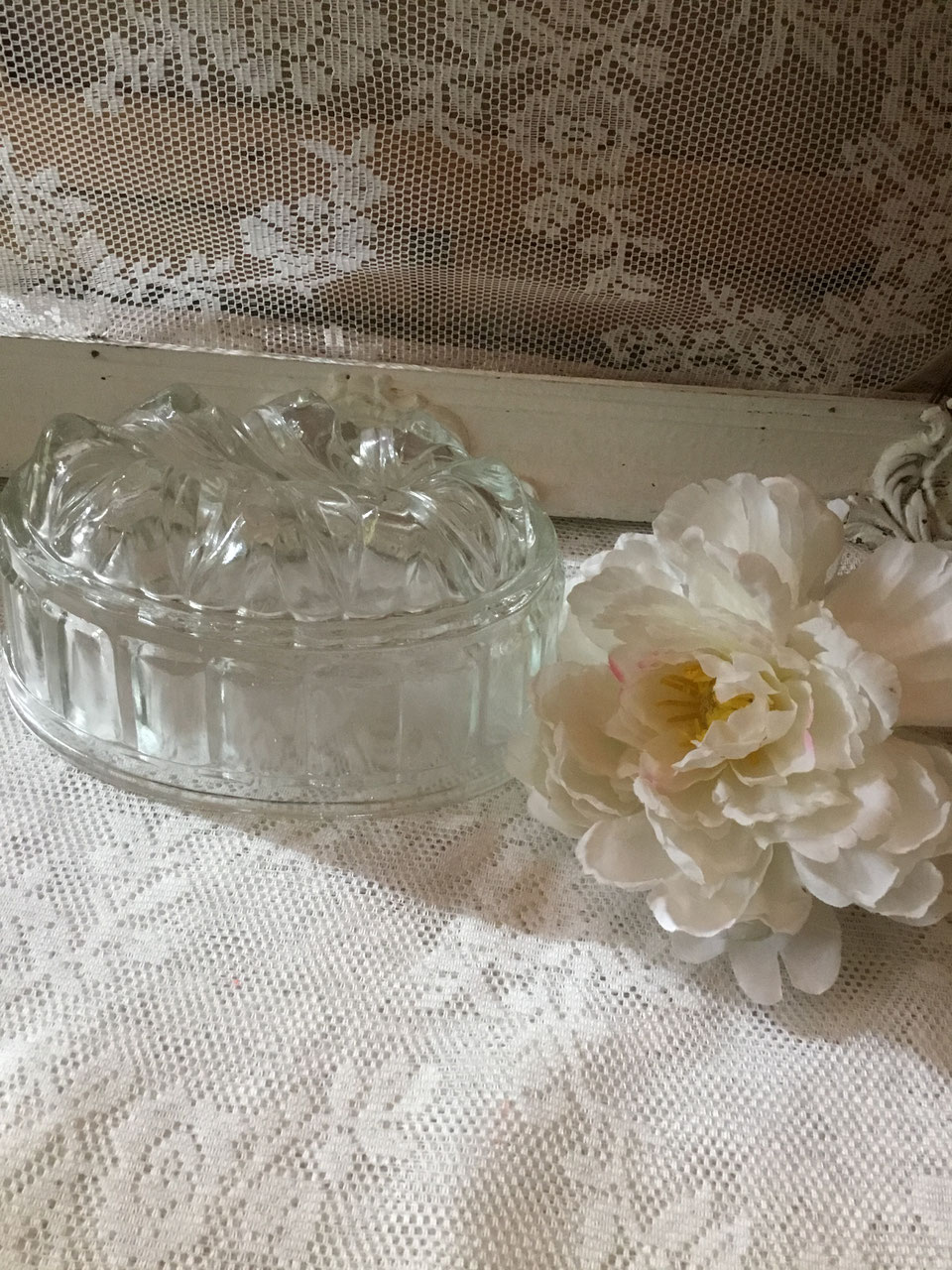 Oud glaspuddingvormpje, doorsnede 12,5 cm.