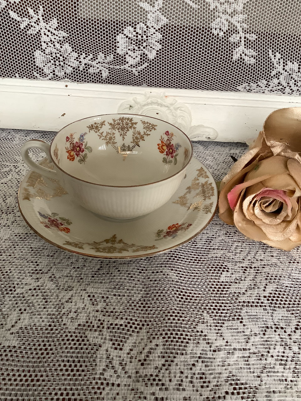 Het goud in het midden is een beetje sleets. Klein kop en schoteltje.