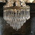 In mooie opgeknapte staat, 6 kaarsenarmen en 5 lampen binnenin, zware kwaliteit brons en glaskralen. Wordt niet verstuurd i.v.m. gewicht.